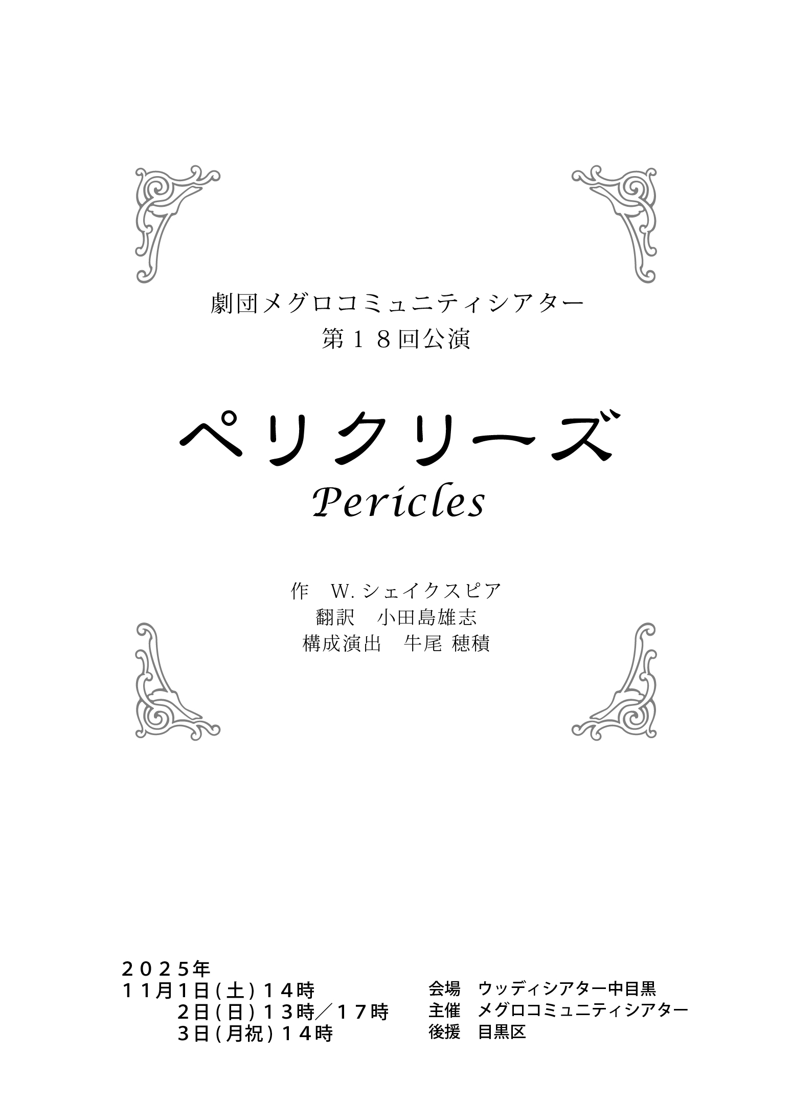 2025年 11月1日(土) 14時 2日(日) 13時/17時 3日(月祝) 14時